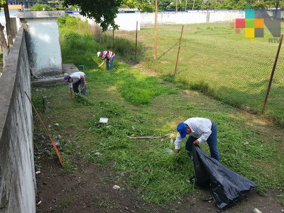 Tierra Blanca, Ver.- Deportistas, ciudadanos y autoridades municipales llevaron a cabo un jornada de limpieza en los campos “Los Gemelos”, a fin de que este espacio tan utilizado por diferentes ligas deportivas se encuentre en mejores condiciones.