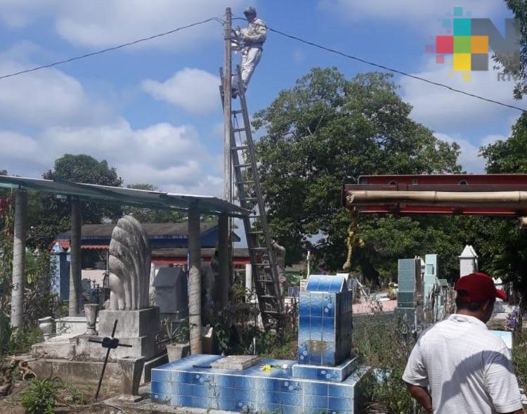 Tierra Blanca, Ver.- Cuadrillas de trabajadores pertenecientes a diferentes servicios públicos municipales de Tierra Blanca llevan a cabo las labores de limpieza y mantenimiento de los panteones, ya que se aproxima la celebración de Día de Muertos.