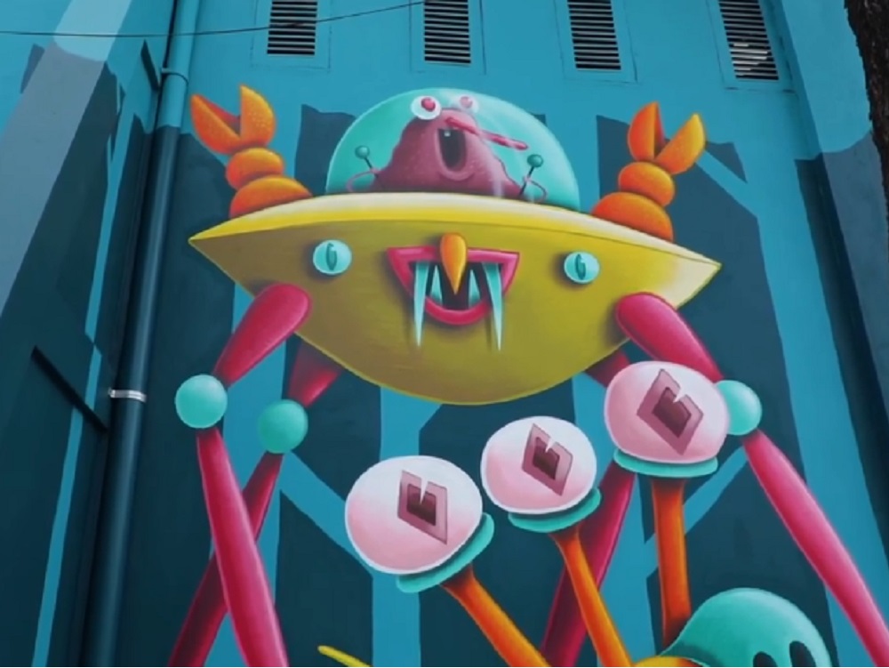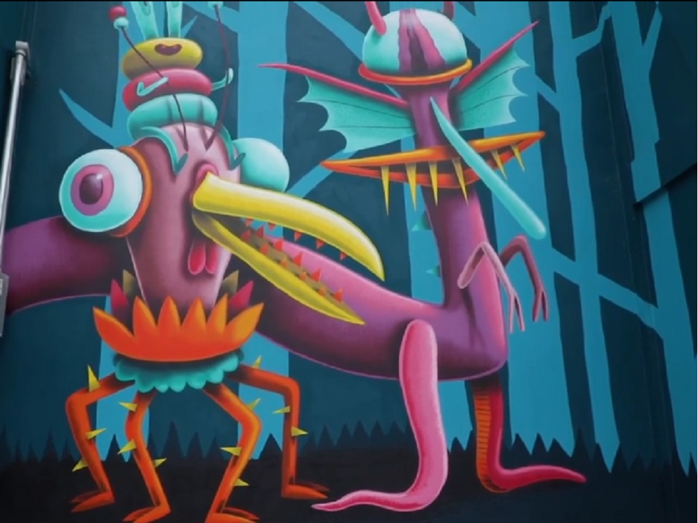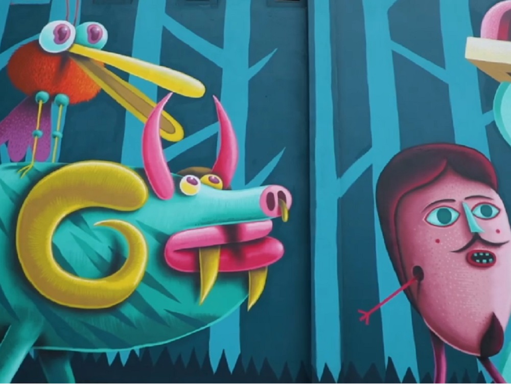 El autor, Nicolás Barrome, utilizó un gran espacio ubicado en la Unidad Habitacional del Fovissste para plasmar su talento, valiéndose de aerosoles, su imaginación y talento y dejando que los colores y figuras crearan el mural «Fovissste en Fiesta».