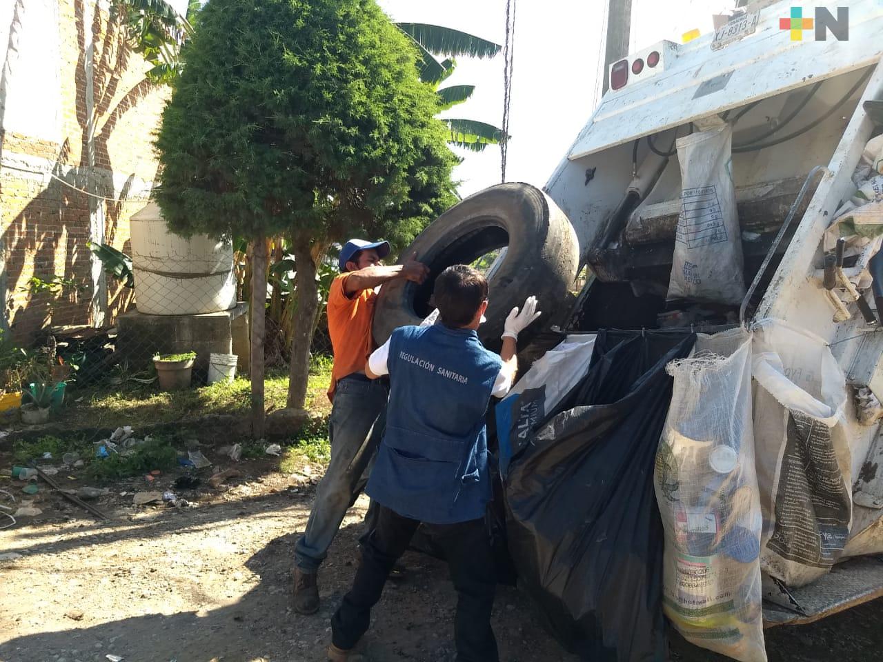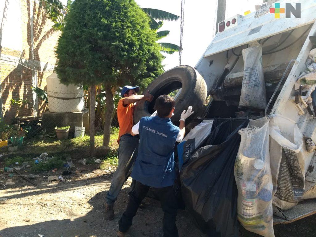 Cada sábado, las jornadas de descacharrización llegan a las colonias de esta capital. Personal de Regulación Sanitaria acuden apoyados por un camión recolector de residuos sólidos a retirar todo tipo de objetos que acumulen agua.