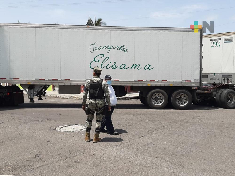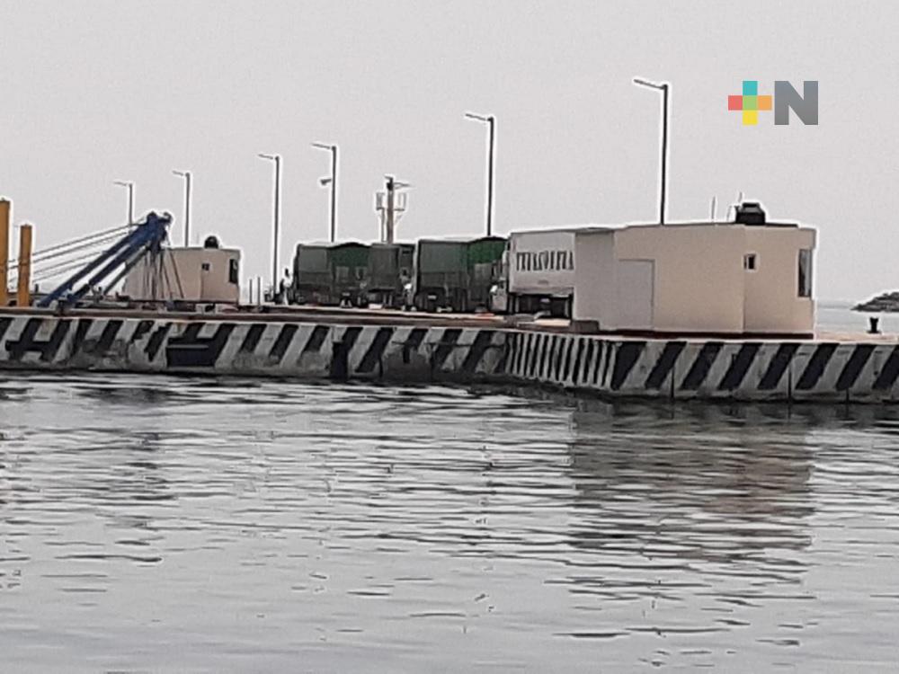 Este mediodía de jueves llegaron al muelle de Veracruz varios camiones de carga pesada con insumos: medicamentos y alimentos.