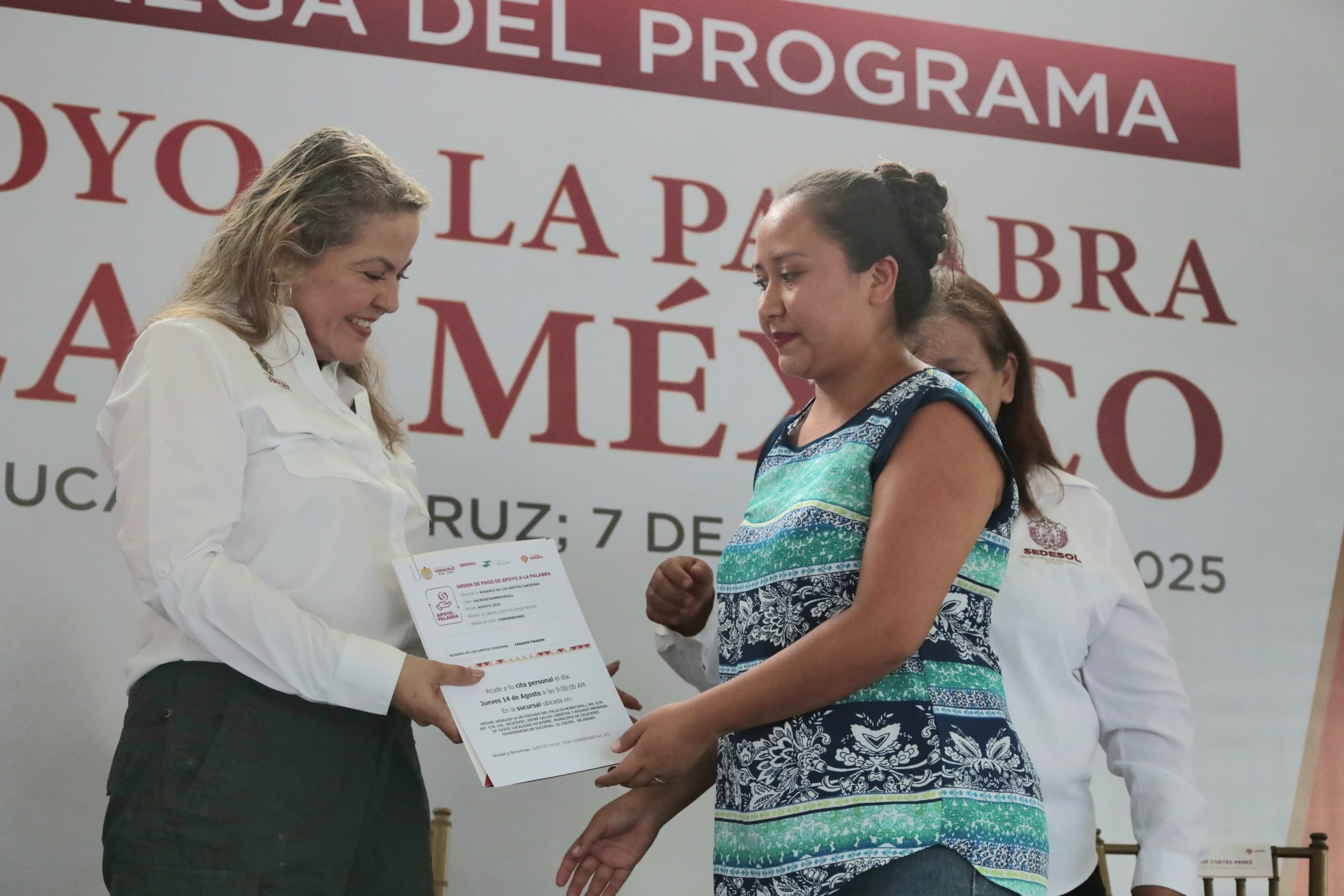 Durante la entrega de las ordenes de pago, la secretaria de Desarrollo Social, Margarita Santopietro Peralta, destacó que “este no es solo un recurso económico, es un acto de confianza y justicia para quienes emprenden en condiciones adversas. Gracias al liderazgo de la gobernadora Rocío Nahle, hoy tenemos un gobierno que cumple y que llega hasta donde más se necesita”.