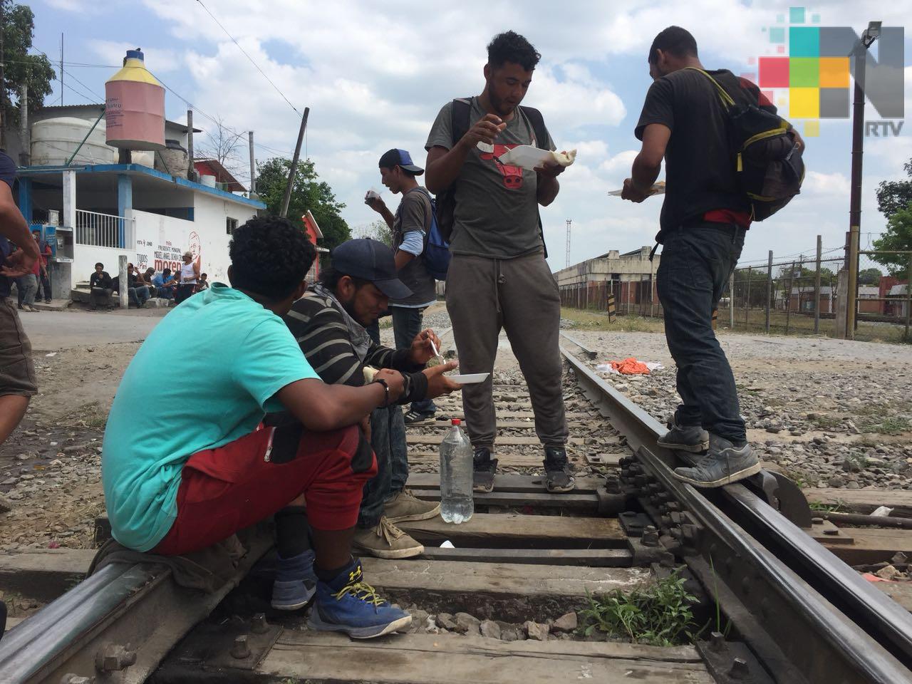 Tierra Blanca, Ver.- A dos días que terminara la Semana Santa, migrantes provenientes de Centroamérica llegaron a Tierra Blanca en búsqueda de alimentos y descanso para llegar a la frontera con los Estados Unidos.