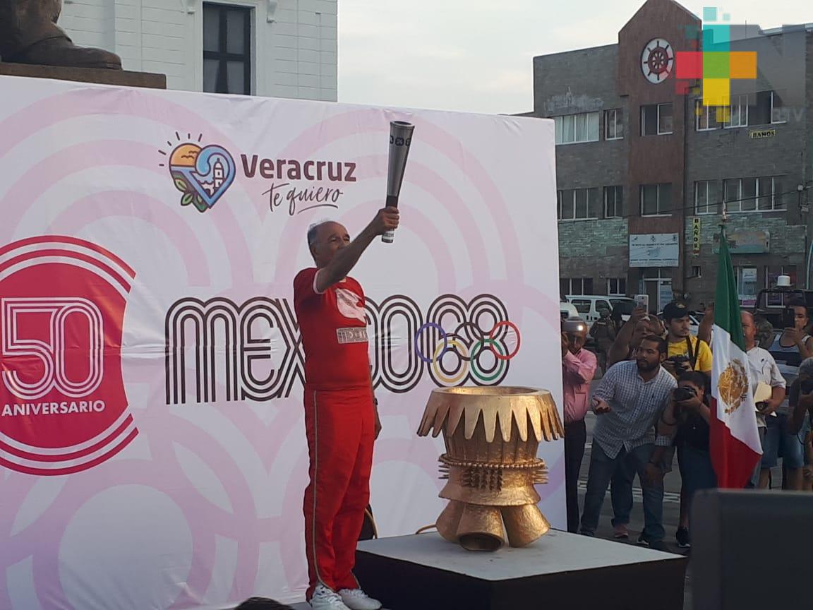 Veracruz, Ver.- Como hace 50 años, la tarde de este viernes arribó a Veracruz el fuego olímpico, custodiado por el Buque Escuela Cuauhtémoc de la Marina Armada de México, en conmemoración a los Juegos Olímpicos de México 1968.