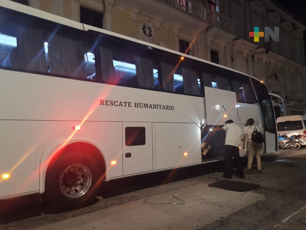 A bordo de un autobús de Rescate Humanitario, las y los ciudadanos extranjeros, en su mayoría de hondureños, llegaron a la ciudad procedentes de Jesús Carranza, municipio del sur de la entidad veracruzana.