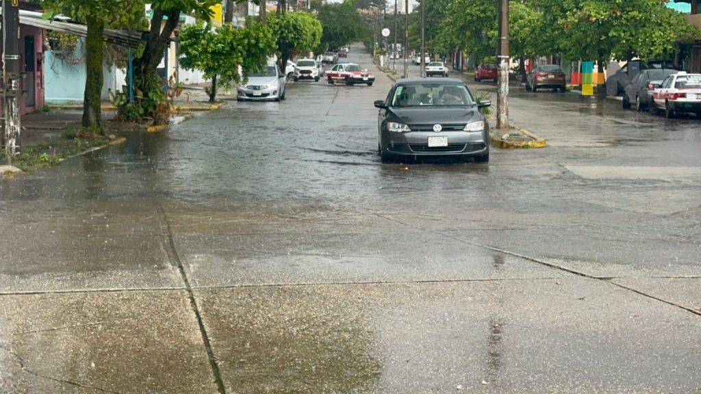 En algunos puntos de Coatzacoalcos hubo anegaciones importantes donde se pidió a los automovilistas tener mucho cuidado para no caer en hundimientos o baches.