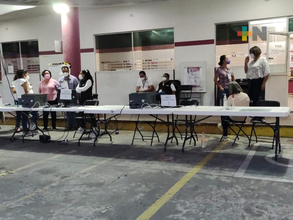 Los integrantes del consejo iniciaron la sesión especial para el cómputo distrital, siendo la casilla básica y contigua de la sección 1063 la primera que llegó a las mesas receptoras instaladas en el patio del INE en Córdoba.