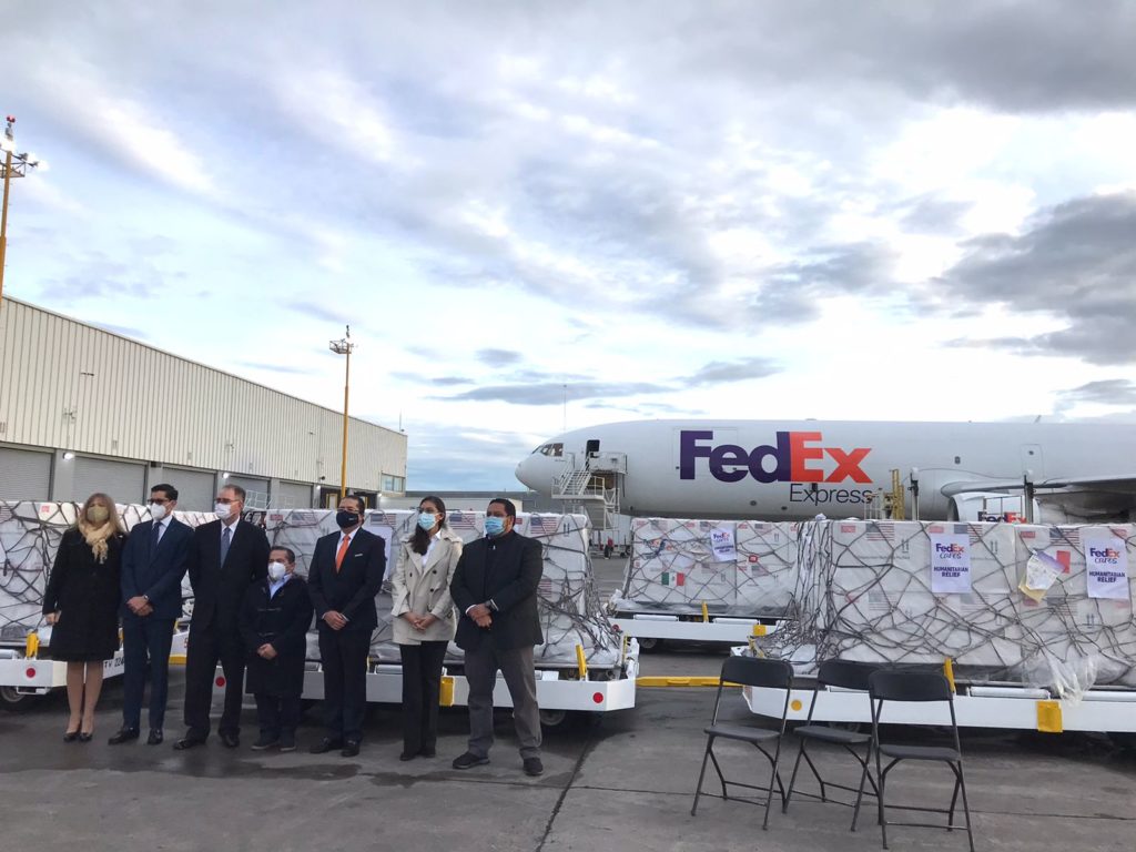 El director para América del Norte de la Secretaría de Relaciones Exteriores, Roberto Velasco Álvarez y el Encargado de Negocios de Estados Unidos, John Creamer, recibieron las dosis en el Aeropuerto Internacional de Toluca.