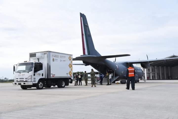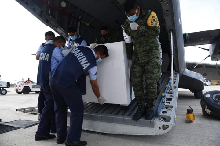 El paquete de vacunas contra COVID-19 llegó a la Base Aérea Naval Las Bajadas de Veracruz, en donde se contó con el valioso apoyo de la Fuerza Aérea Mexicana.