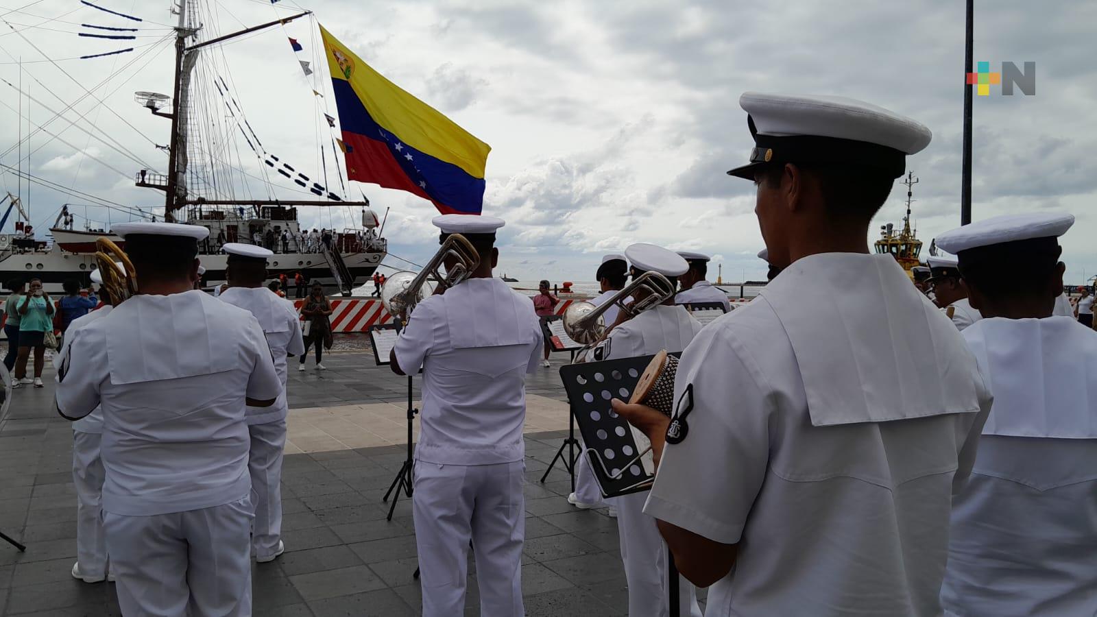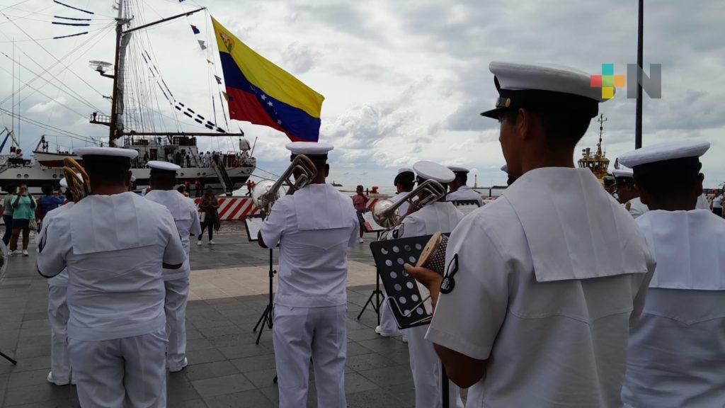 Veracruz, Ver.- Con “Hasta que te conocí” del cantautor mexicano Juan Gabriel, la Secretaría de Marina recibió al Buque Escuela Simón Bolívar de la Armada de Venezuela.