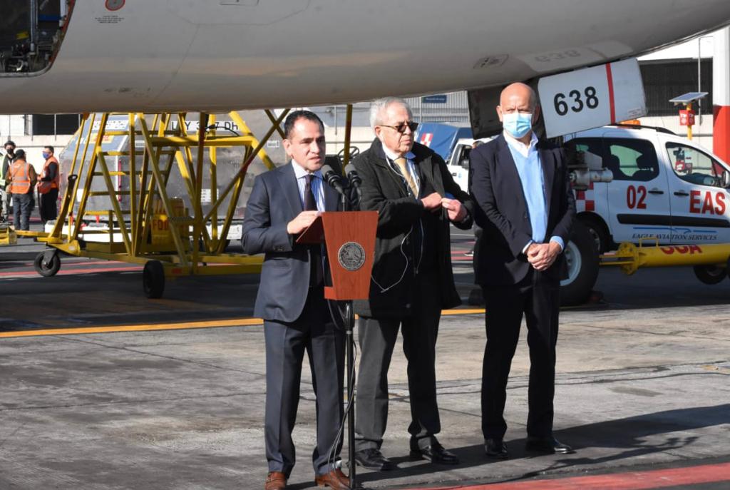 Uno de los cargamentos fue recibido por el director del IMSS, Zoé Robledo, en el aeropuerto de Monterrey, Nuevo León, en tanto que en la Ciudad de México le correspondió al secretario de Salud, Jorge Alcocer.