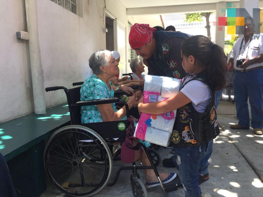 Llevan alegría motociclistas del sureste del país al asilo del Perpetuo Socorro de Coatzacoalcos