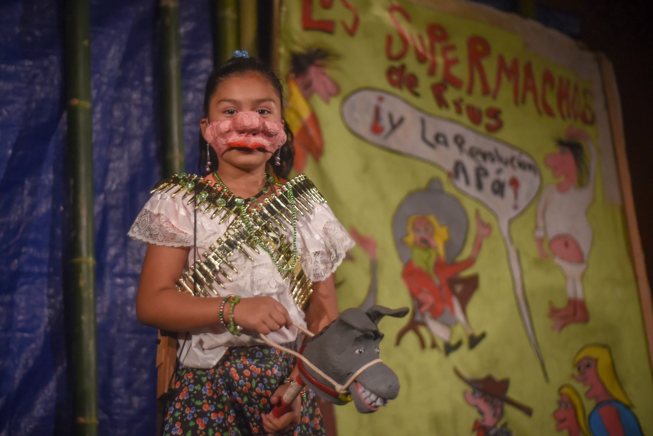 Xalapa, Ver.- El Grupo de teatro Campesino Comunitario de El Tronconal presentó su adaptación de Los Supermachos de Eduardo del Río, Rius, «¿Y la Revolución, apá?», en el Salón Ejidal de El Tronconal, evento al que asistió el presidente municipal Hipólito Rodríguez Herrero.