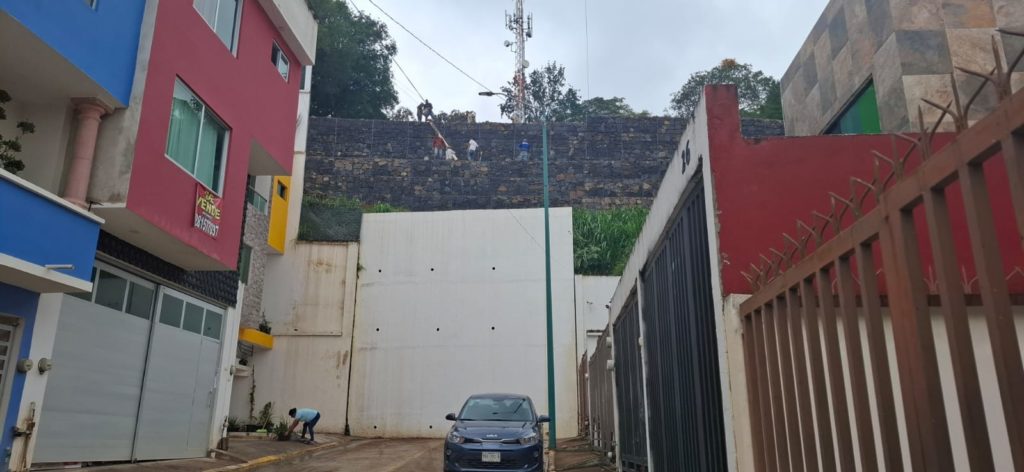 De acuerdo con los vecinos, la tierra del cerro que está arriba de sus viviendas se reblandeció con la construcción de este muro, aunque señalan otra construcción metros arriba, en la calle privada Cerezos, que también ha provocado movimientos de tierra, agravando su problema.