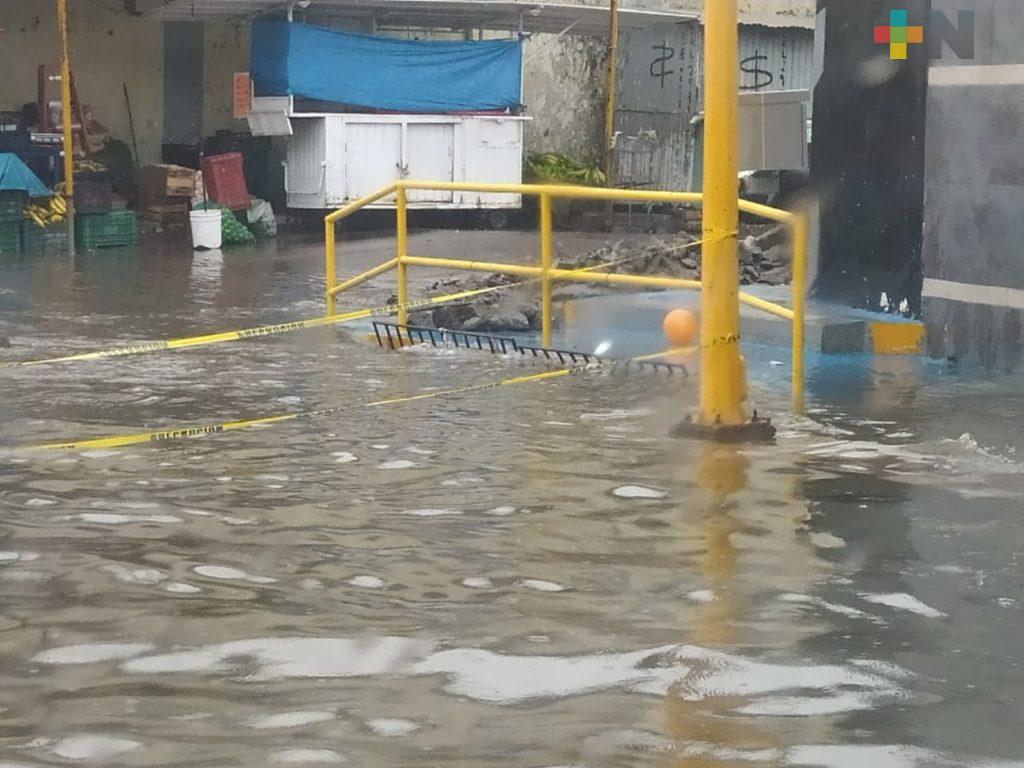 Veracruz, Ver.- La intensa lluvia registrada la mañana de ayer miércoles, provocó inundaciones en las principales calles y avenidas de la cabecera municipal de Alvarado.