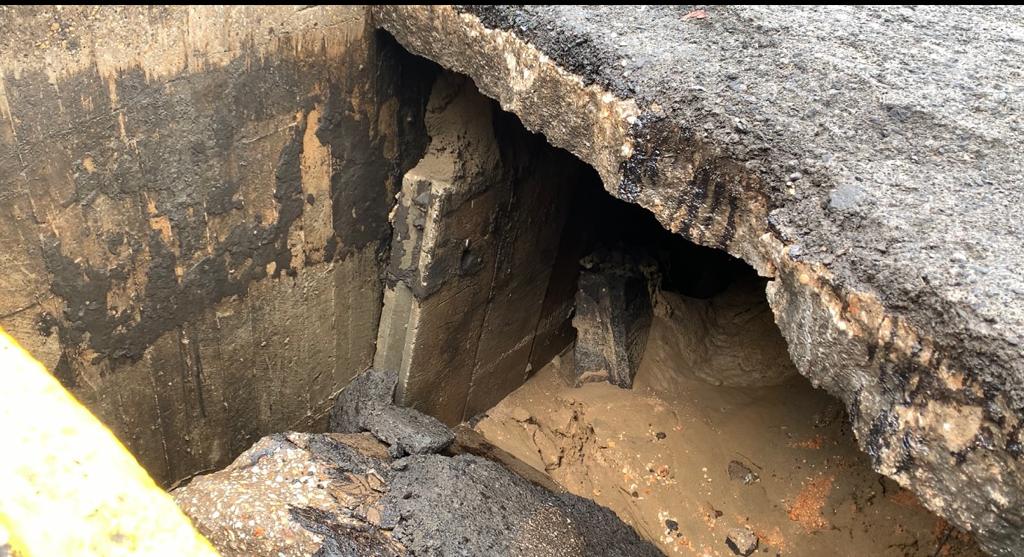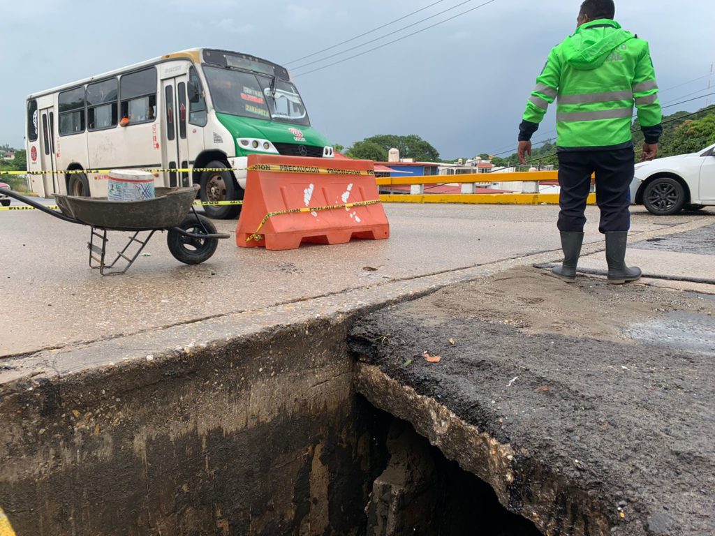 Se informó que el socavón no compromete la infraestructura del Puente, pues el problema radica en la junta y en los lavaderos a los costados, que por el paso del tiempo se ha visto dañada.