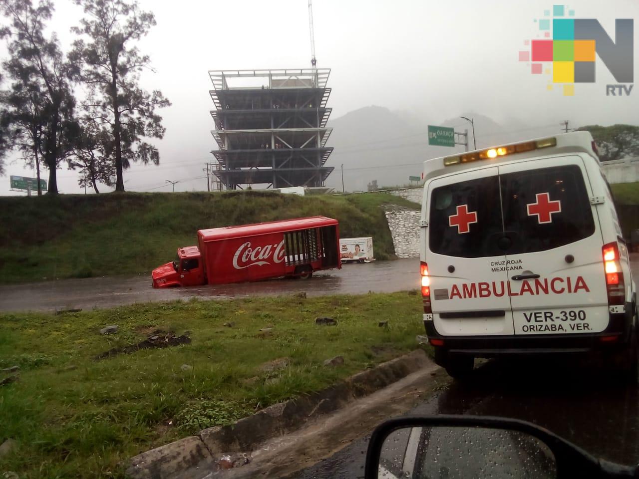Lluvias afectaron circulación en carretera Puebla- Córdoba, a la altura de la entrada a Orizaba