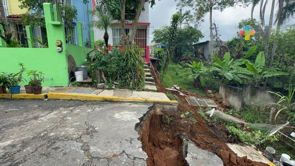 En Córdoba se registró en la unidad habitacional Cecadys, el deslizamiento de tierra en una privada, causando daños en viviendas y en la vialidad.