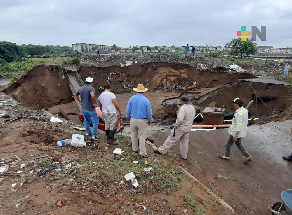 Alrededor de las 8 de la mañana de este jueves, empleados de la empresa constructora del fraccionamiento comenzaron con los trabajos de reparación de la zona afectada.