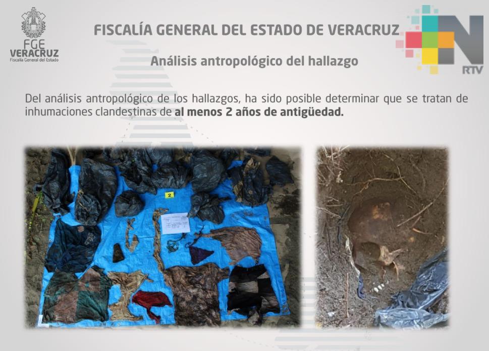 “El día de hoy, supervisé personalmente los trabajos en el área de búsqueda, que por razones de seguridad de las personas que continúan en los trabajos de procesamiento se mantendrá reservado, en donde se han localizado, además de restos humanos, más de 200 prendas, 114 identificaciones, así como diversos accesorios y artefactos personales. Del análisis antropológico de los hallazgos, ha sido posible determinar que se tratan de inhumaciones clandestinas de al menos 2 años de antigüedad”.