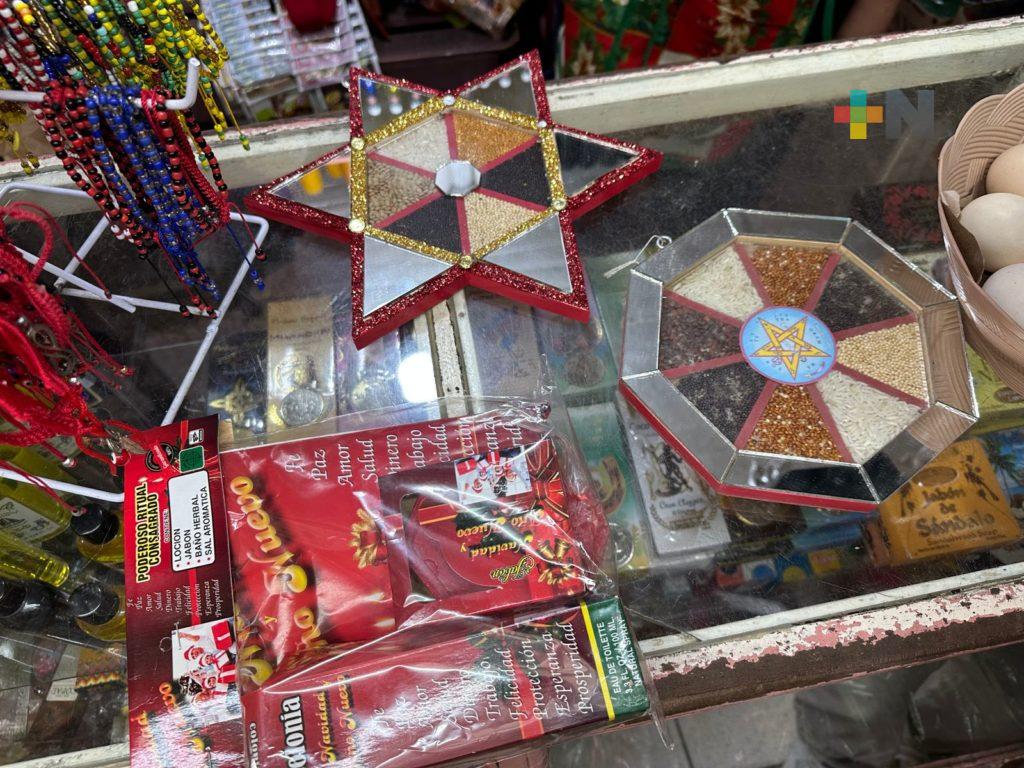En el local ocho del mercado Coatzacoalcos, pueden encontrar desde semillas, velas de diferentes tamaños y colores para atraer cosas positivas, además de inciensos, lociones, jabones, sales aromáticas y baños herbales.