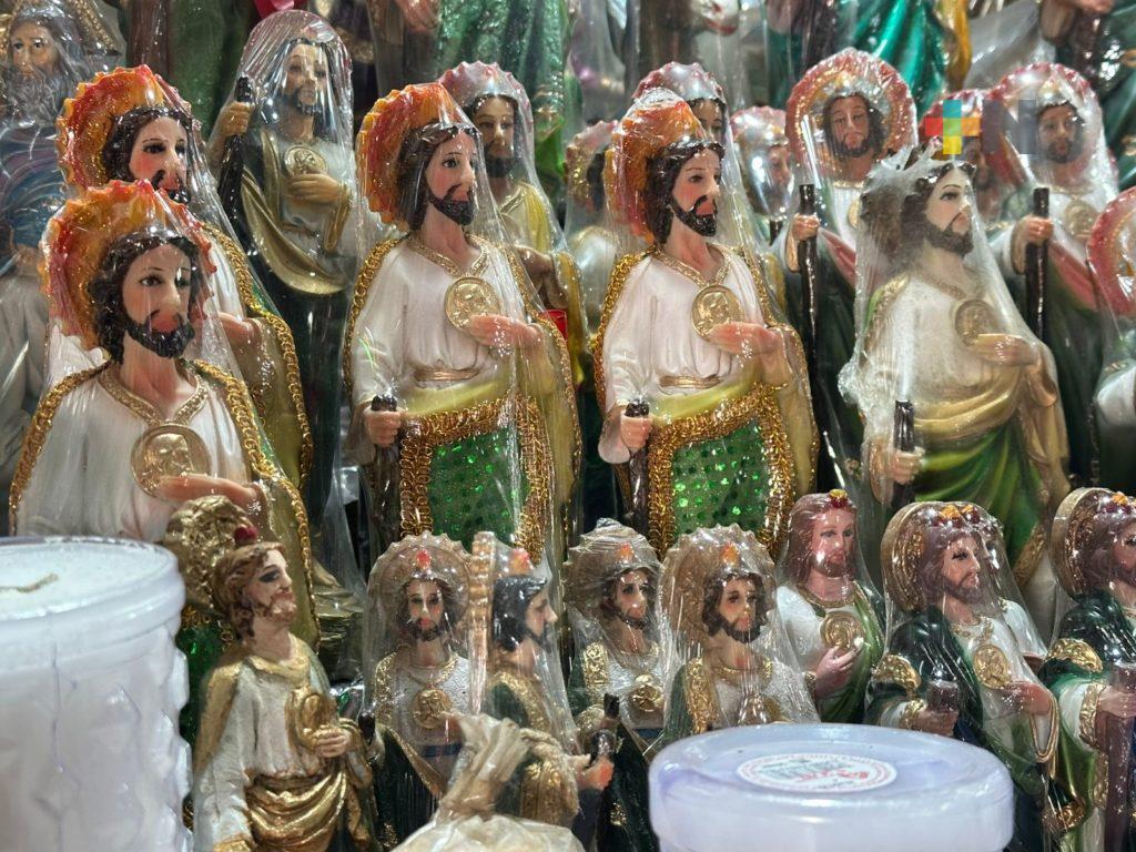 De acuerdo a Sonia, comerciante del mercado, los artículos que llegan a buscar los porteños son para los festejos de San Judas Tadeo, Halloween y Día de Muertos.