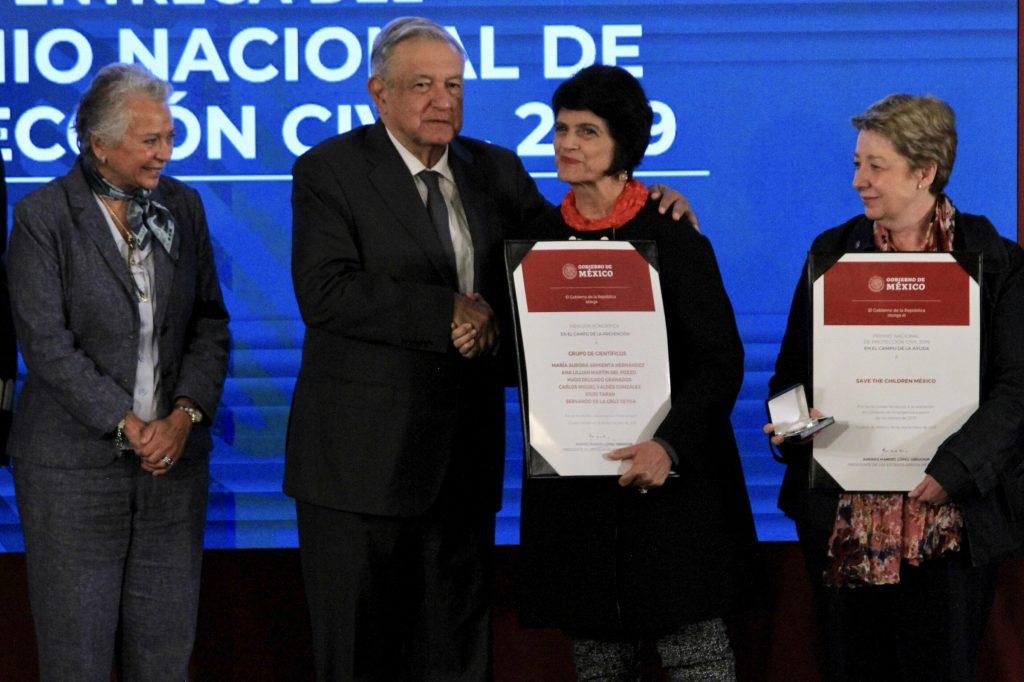 Además, otorgó el Premio Nacional de Protección Civil en el campo de Ayuda a María Josefina Menéndez Carvajal, representante legal de Save The Children México.