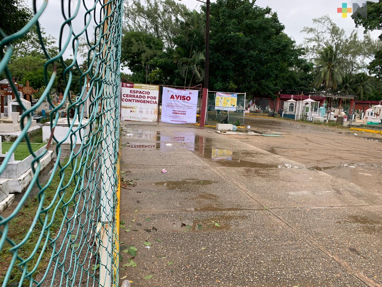 Coatzacoalcos, Ver.- Este 2 de noviembre los panteones como el Antiguo Municipal, lucieron vacíos por su cierre derivado de la pandemia de coronavirus y la lluvia.