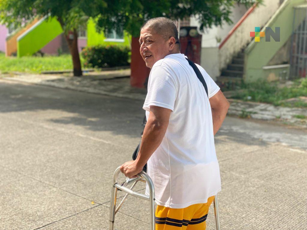 Veracruz, Ver.- Juan Manuel Moreno trabajó más de 30 años como mesero, hace dos años perdió su pierna izquierda por complicaciones de diabetes, principal causa de amputaciones de extremidades inferiores no traumáticas. Hoy, vive solo, sin contar con el apoyo para continuar con sus terapias y lucha para reintegrarse a la vida laboral.