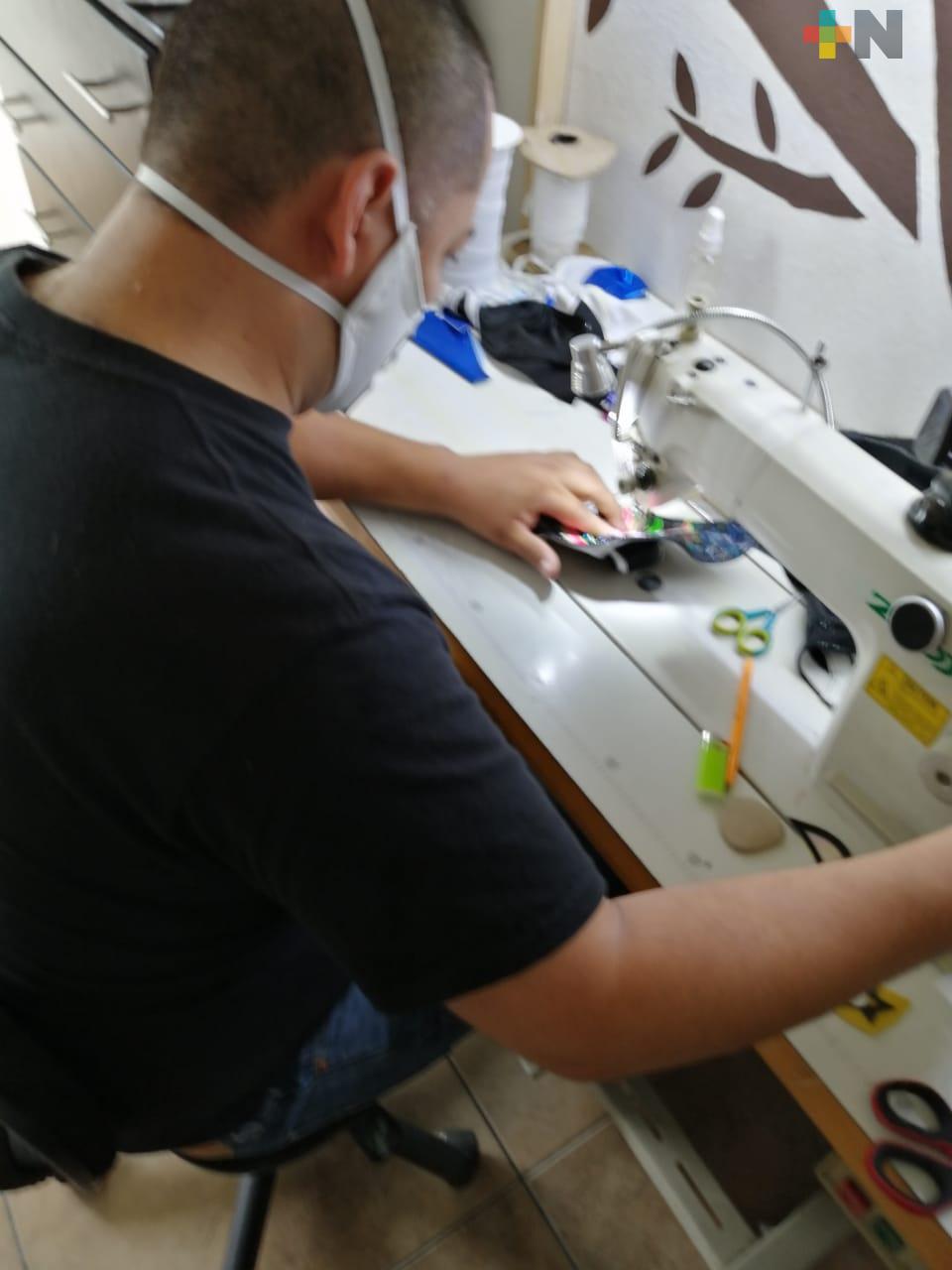 Todo un equipo confecciona estos cubrebocas de licra y algodón, y que llaman la atención porque son de personajes animados o de luchadores lo que lo hace atractivo.