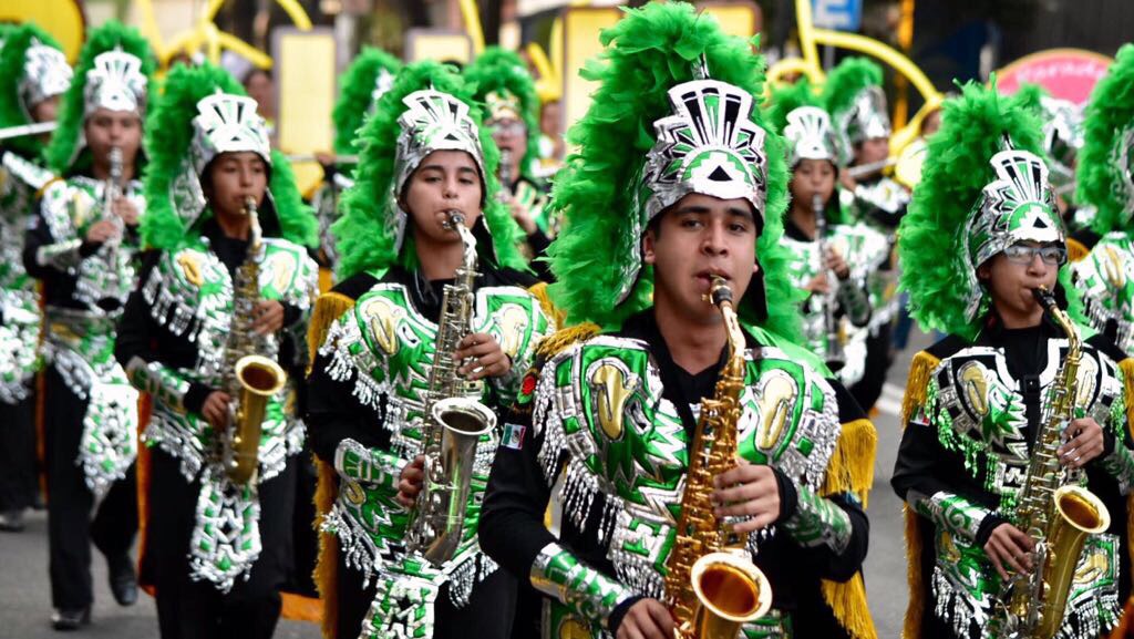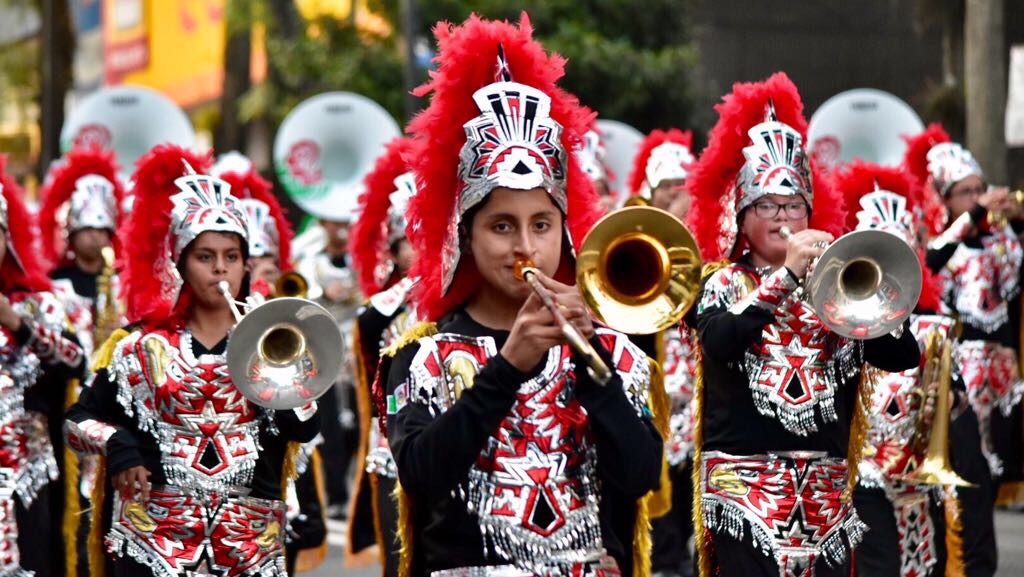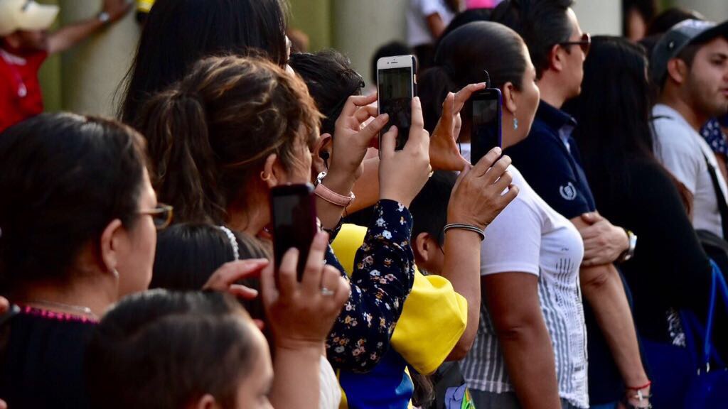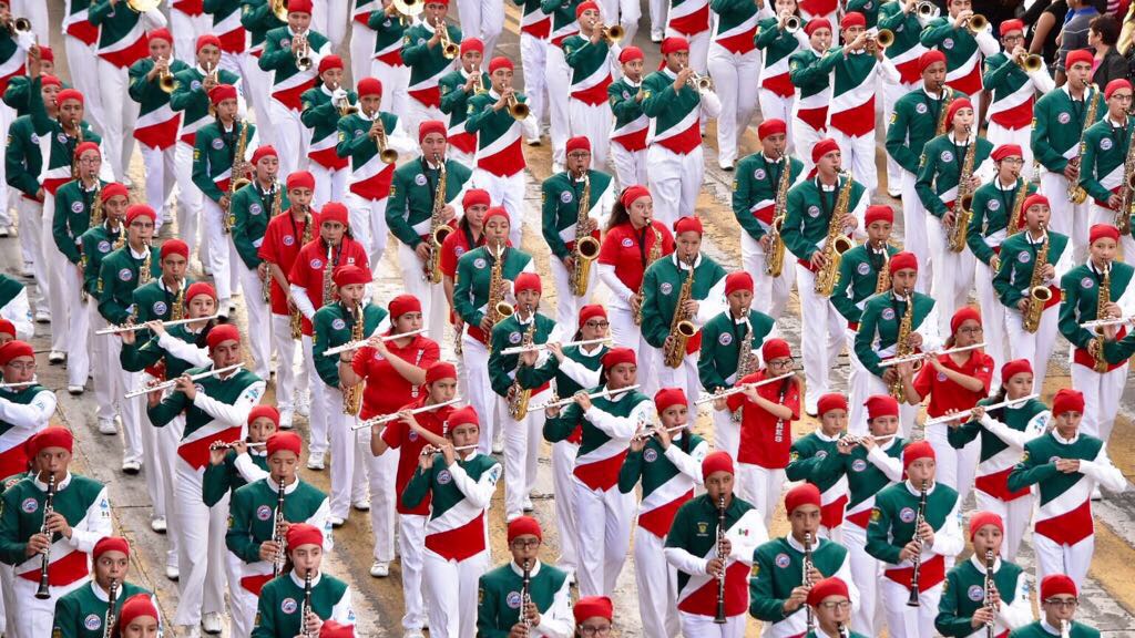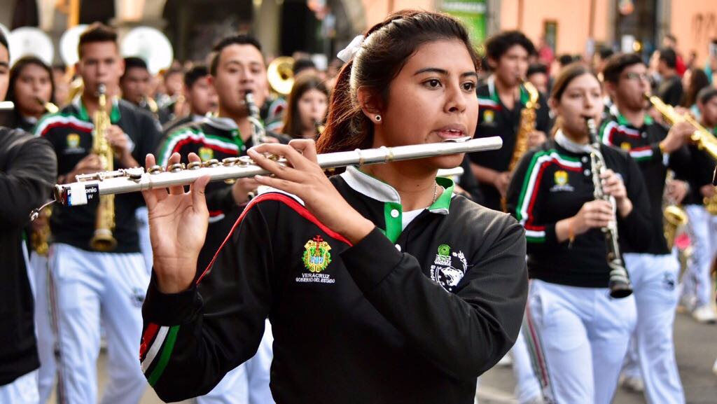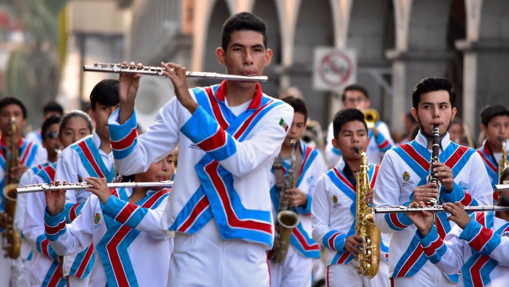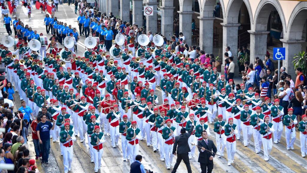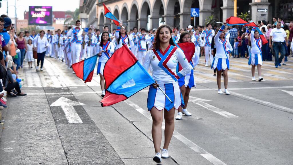 Miles de xalapeños se apostaron por las calles donde pasaron los contingentes de estudiantes que entonaban animadas melodías y bailes para interactuar con el público que los siguió desde el Teatro del Estado hasta el Estadio Heriberto Jara Corona, donde se entonaría el Himno Nacional para concluir la celebración.
