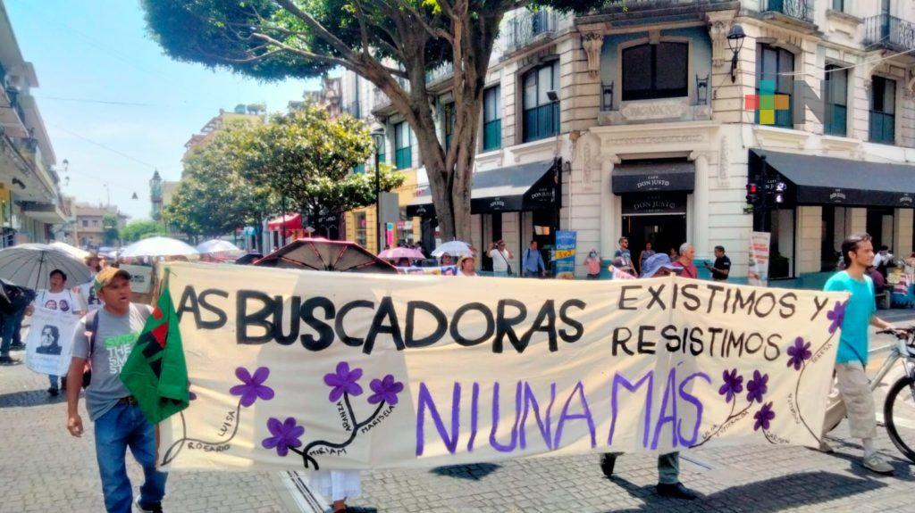 También, integrantes del colectivo “Buscando a nuestras desaparecidas y desaparecidos Veracruz” marchó desde el panteón Palo Verde hacia el monumento a la madre en demanda de información para dar con el paradero de sus hijos.