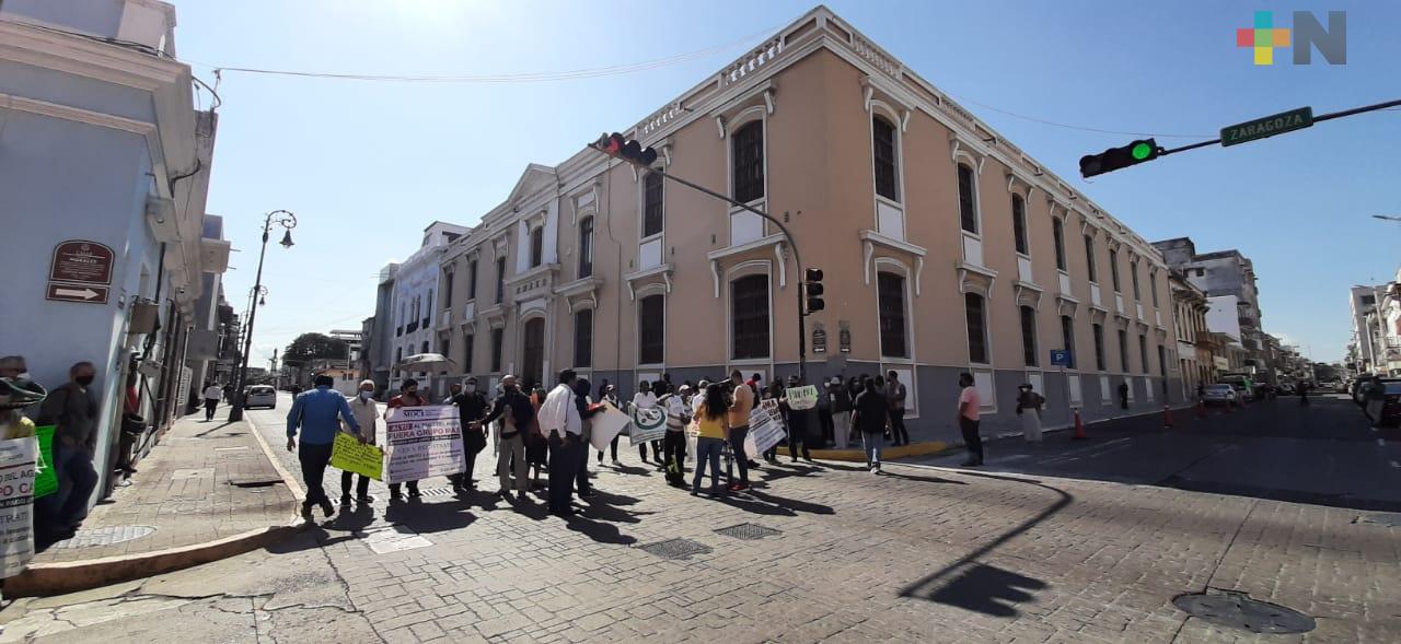 Manifestantes bloquean calles en Centro Histórico de Veracruz; se quejan contra Grupo MAS