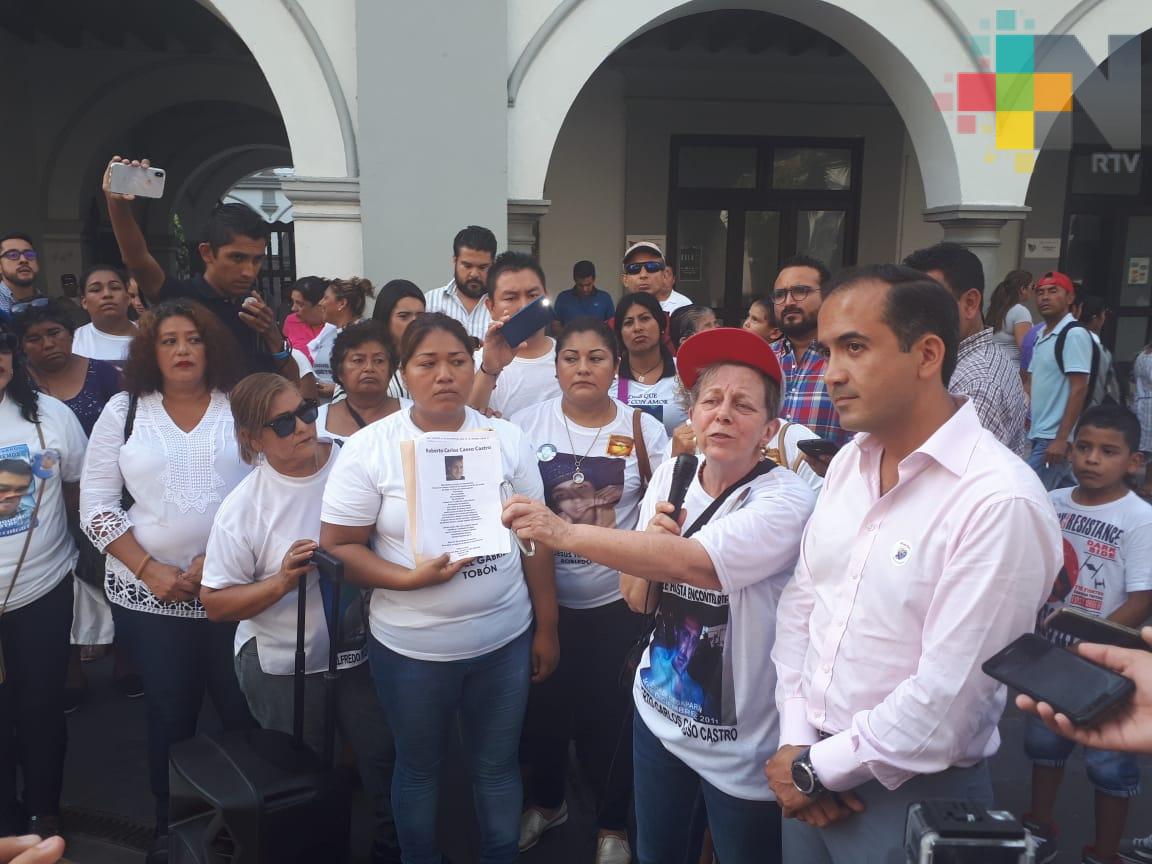 En la protesta que concluyó en el Zócalo de la ciudad, el alcalde Fernando Yunes Márquez les externó su solidaridad y el apoyo de su gobierno para que puedan encontrar a sus familiares.