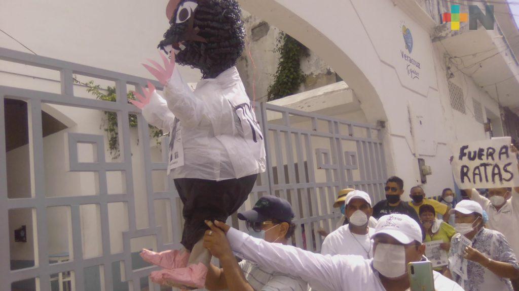 Veracruz, Ver.- Con pancartas, y acompañados de una piñata en forma de rata, ciudadanos del puerto de Veracruz se manifestaron en contra de los operativos que ha realizado la Dirección de Tránsito Municipal que encabeza Arturo García, ya que aseguran, se han dado situaciones de abuso y de autoridad con cobros excesivos sin justificar.