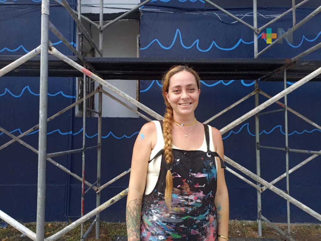 Boca del Río, Ver.- La artista urbana María José Armenta también conocida como «María Love», se convirtió en la primera mujer que pinta un mural sola dentro del proyecto Art Distric de Boca del Río.