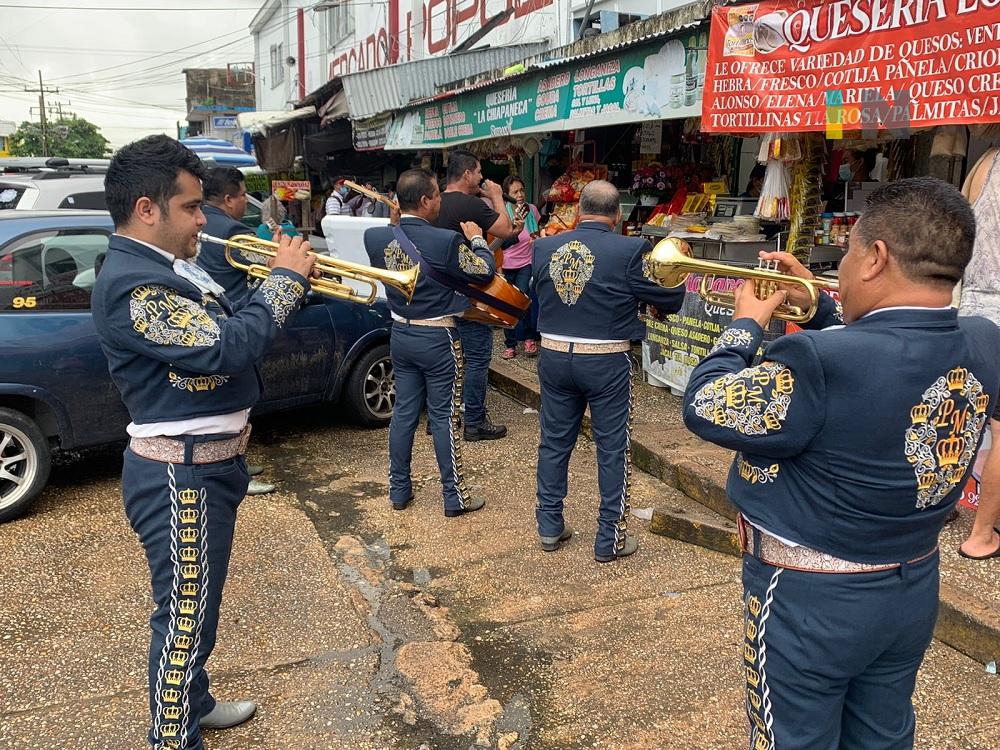 Coatzacoalcos, Ver.- En el marco del Día del Músico el Mariachi Puerto México de Coatzacoalcos se presentó en el mercado Morelos de la ciudad en una celebración privada para una locataria, esta agrupación es de las primeras de fundarse en la ciudad y llevan la música tradicional mexicana a donde los llamen con cada uno de sus instrumentos.