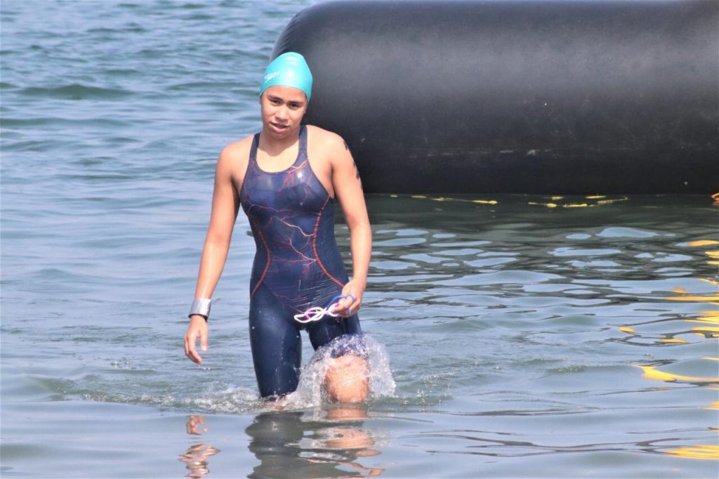 “Me siento feliz y cansada, estuvo fuerte, casi medio año que no nadaba pero sí se siente bonito regresar. El mar estuvo pesado y me agotaron los brazos, pero estuvo bien.