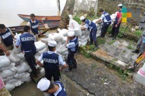 En un comunicado, precisó que anoche y esta madrugada personal naval realizó el llenado de tres mil 500 costalillas que son colocadas como barrera de contención en las viviendas ubicadas en la ribera del río, a fin de reducir las afectaciones en los hogares de las familias veracruzanas.