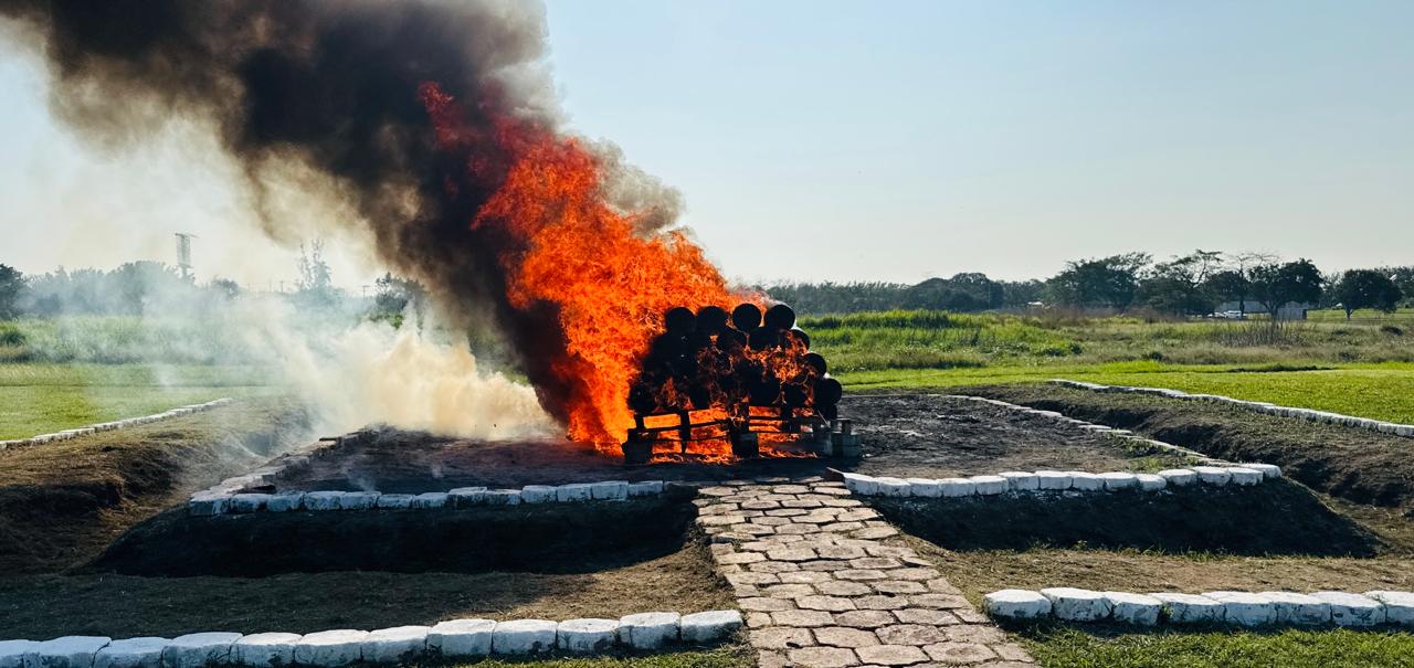 El acto de incineración se realizó en el Polígono Naval de Las Bajadas, donde el Órgano Interno de Control de la FGR, supervisó que los procesos de incineración y destrucción se llevaran a cabo en términos de la normatividad de la materia aplicable, y peritos de esa institución, así como la identidad química de la droga destruida.