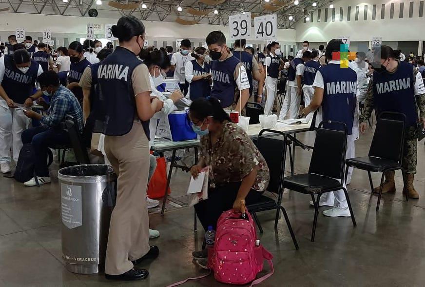 Boca del Río.- Las y los trabajadores del sector educativo llegaron al World Trade Center de Boca del Río para recibir la vacuna anticovid.