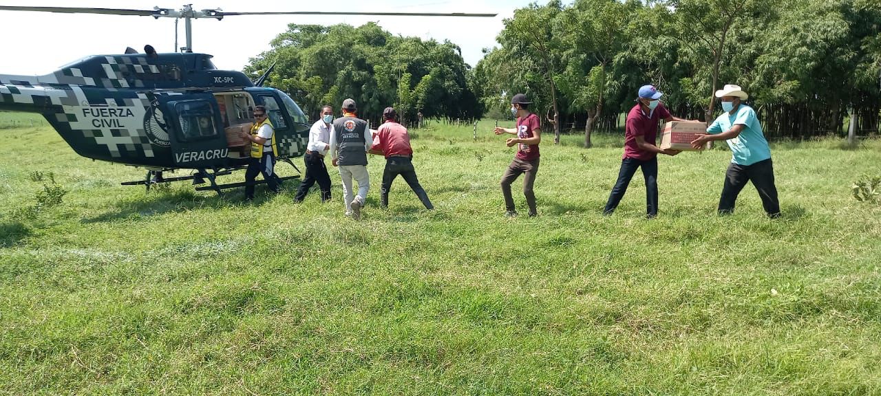 Xalapa, Ver.- Esta mañana, el gobernador Cuitláhuac García Jiménez, dio a conocer que, a través de un puente aéreo, el Gobierno del Estado repartió insumos a mil 300 familias afectadas por las recientes lluvias e inundaciones en comunidades de Lerdo de Tejada y Saltabarranca.