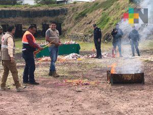 Xalapa, Ver.- Aproximadamente 220 kilogramos de pirotecnia que fue incautada durante operativos efectuados en el mes de diciembre, fue destruida por integrantes de la dirección municipal de Protección Civil en coordinación con la Secretaría de Seguridad Pública y la Fuerza Civil.