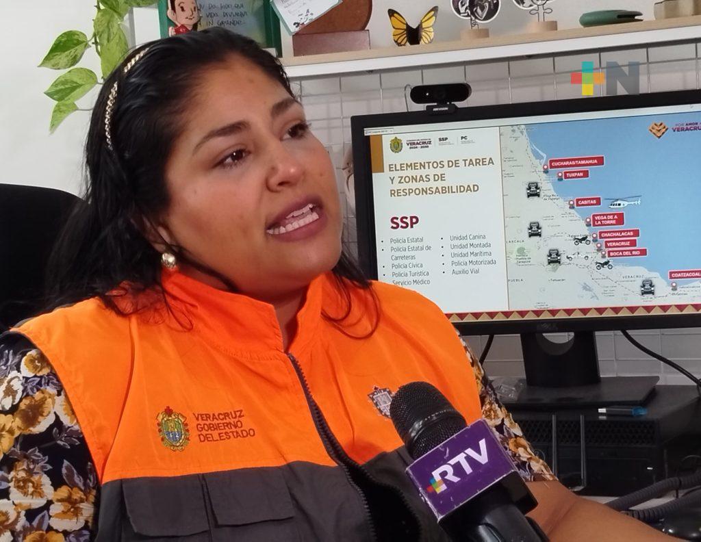 Xalapa, Ver.- En norte, centro y sur, montaña y playa, la Secretaría de Protección Civil en coordinación con fuerzas de tarea trabaja en el operativo vacacional. Brigadistas voluntarios, Ejército, Seguridad Pública y elementos de la dependencia municipal y estatal de Protección Civil están operando, comentó Brenda Cerón, titular de la Dirección de Administración y Atención de Emergencias.
