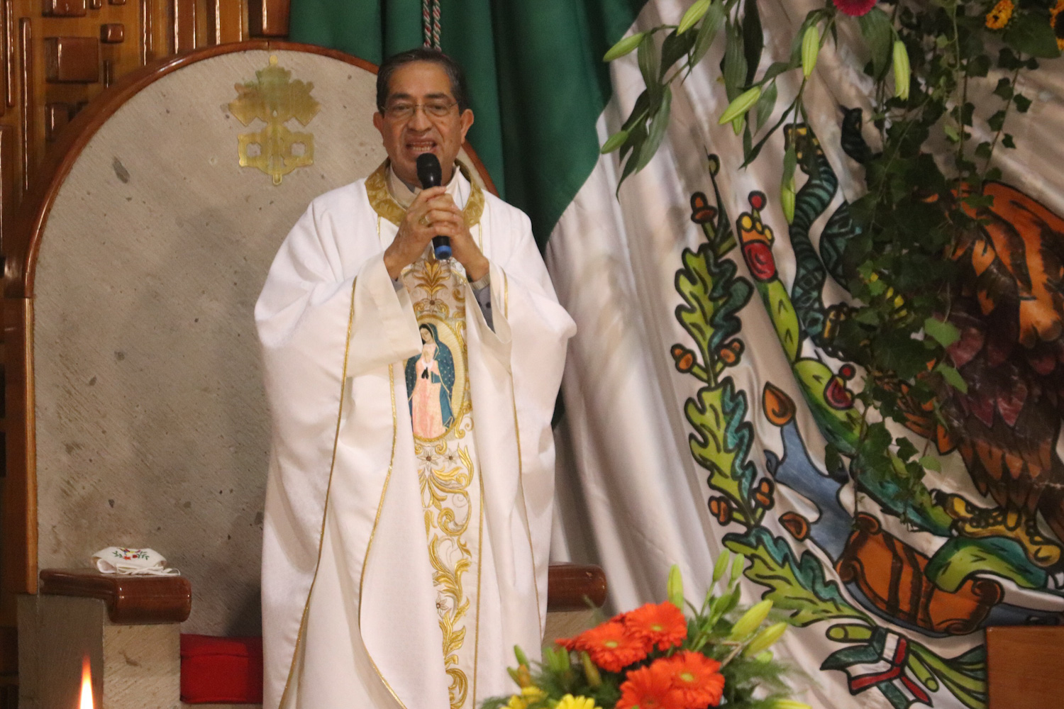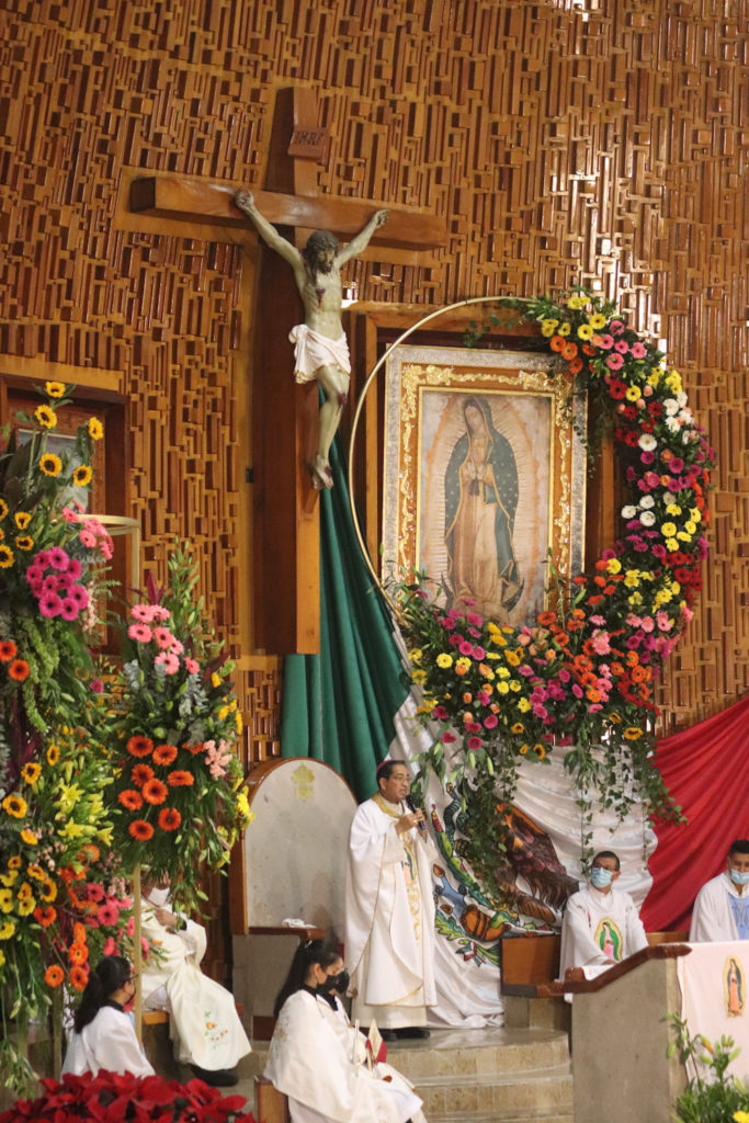 Xalapa, Veracruz.- Al cumplirse 490 años de la aparición de la Virgen de Guadalupe a Juan Diego en el cerro del Tepeyac, el administrador apostólico, monseñor José Trinidad Zapata encabezó la misa en la Basilica menor de El Dique donde decenas esperaban al termino de la celebración eucarística para entrar para mostrar sus respetos a La Guadalupana