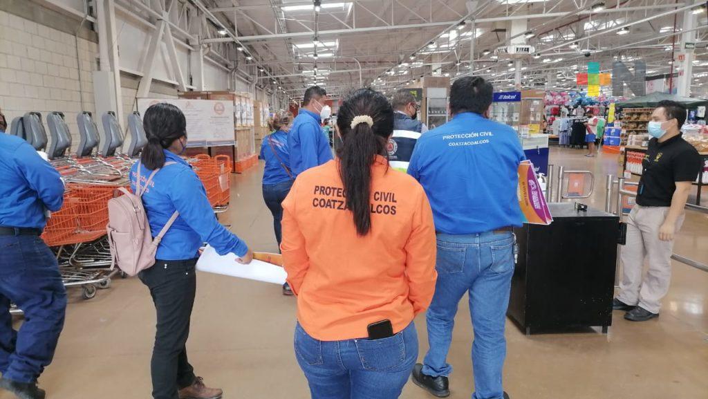 Mediante operativo, Protección Civil de Coatzacoalcos verificó protocolos de salud en centros comerciales