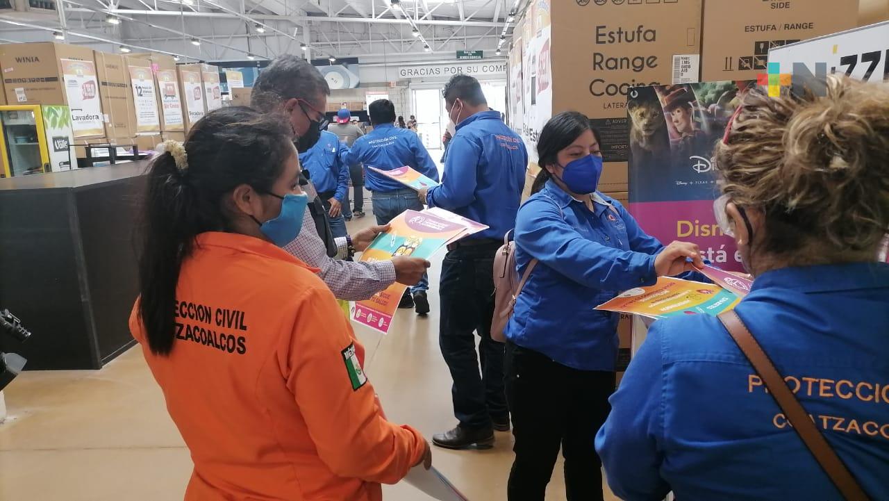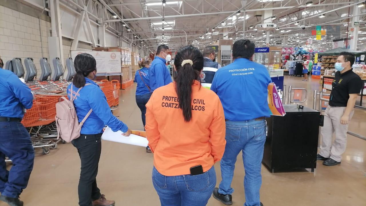 Mediante operativo, Protección Civil de Coatzacoalcos verificó protocolos de salud en centros comerciales