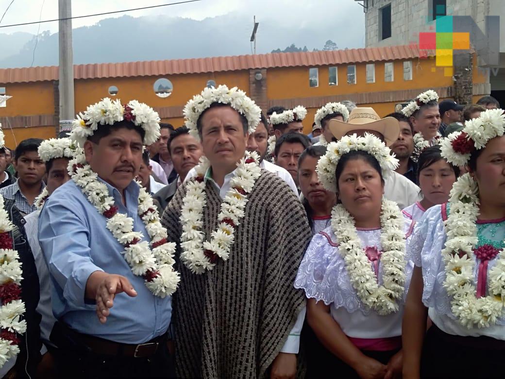 Durante la tarde del domingo, el mandatario llegó al Palacio Municipal en donde fue recibido con ritos y presentes; la población reconoció el interés del Gobernador por solucionar varios de los temas que preocupan en la zona serrana.