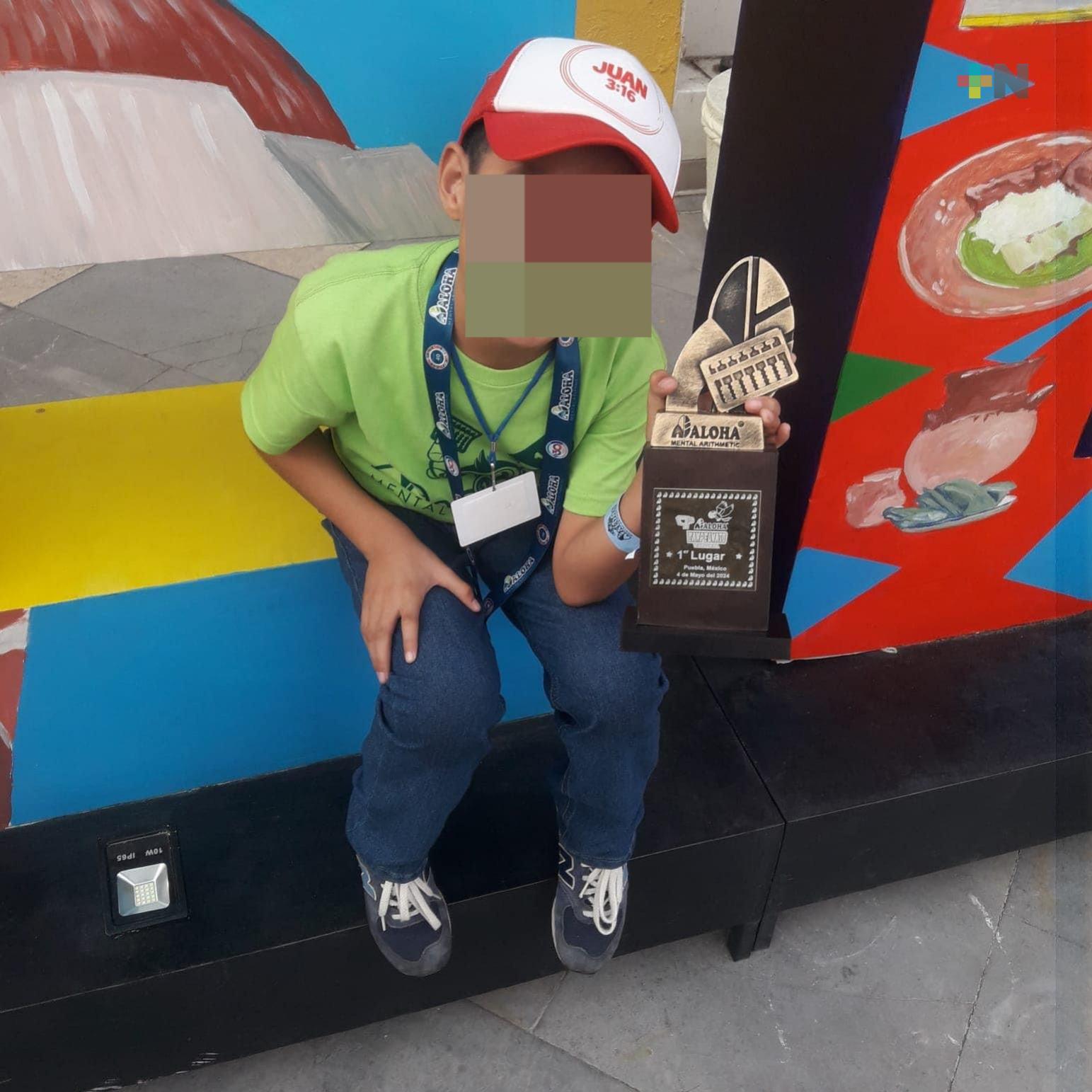 Coatzacoalcos, Ver.- Por tercera ocasión, Thiago Blasi Hernández, de siete años obtuvo el primer lugar en el campeonato nacional de matemáticas que organizó Aloha Mental Arithmetic en Puebla.