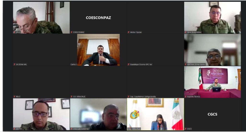 Participaron el Encargado de Despacho de la Secretaría de Gobierno, Carlos Alberto Juárez Gil; el Secretario de Seguridad Pública, Cuauhtémoc Zúñiga Bonilla; la Secretaria de Protección Civil, Guadalupe Osorno Maldonado, así como mandos del Ejército Nacional, Guardia Nacional y Secretaría de Marina.